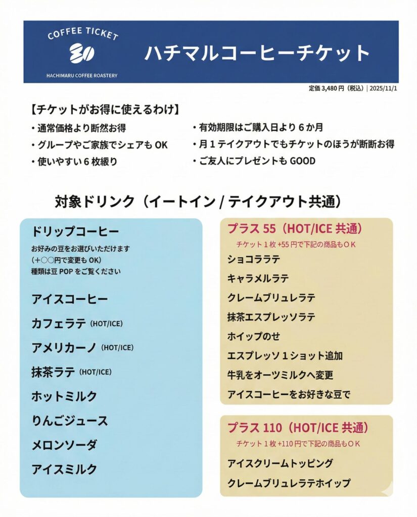 ハチマル珈琲焙煎所 コーヒーチケットのご案内