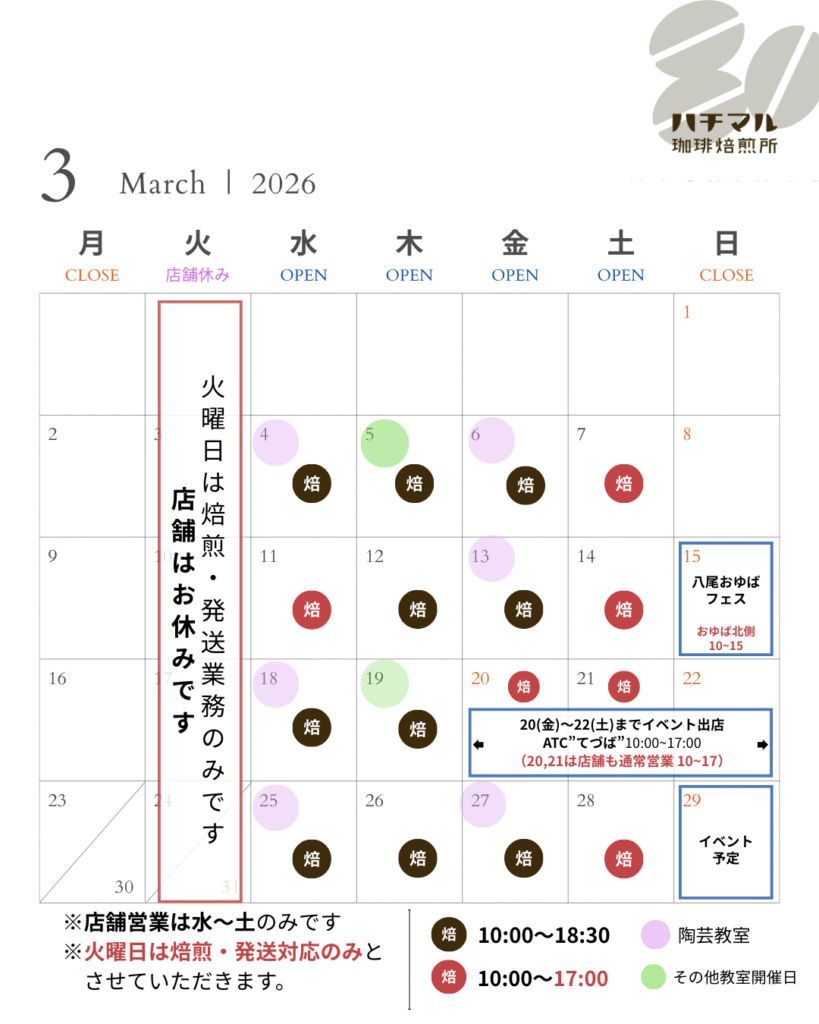 営業日はこちらです。変更がある場合は随時こちらで更新いたします。