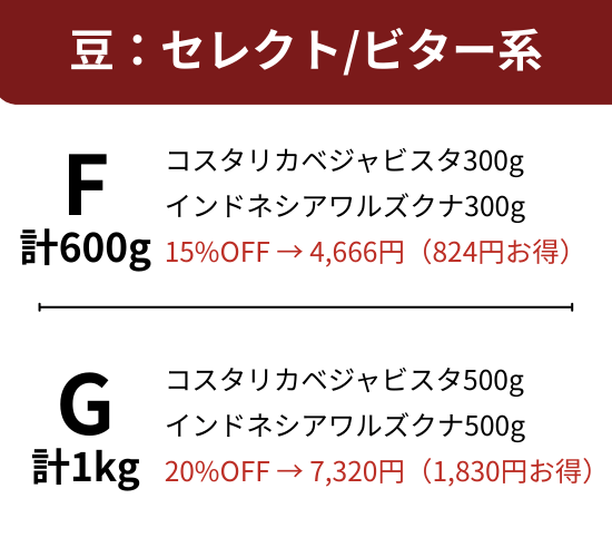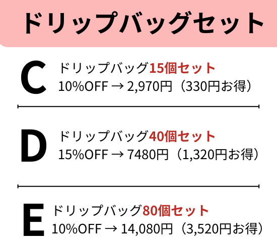 E:(ブレンド3種+コスタリカ)×各15袋+アソート20袋